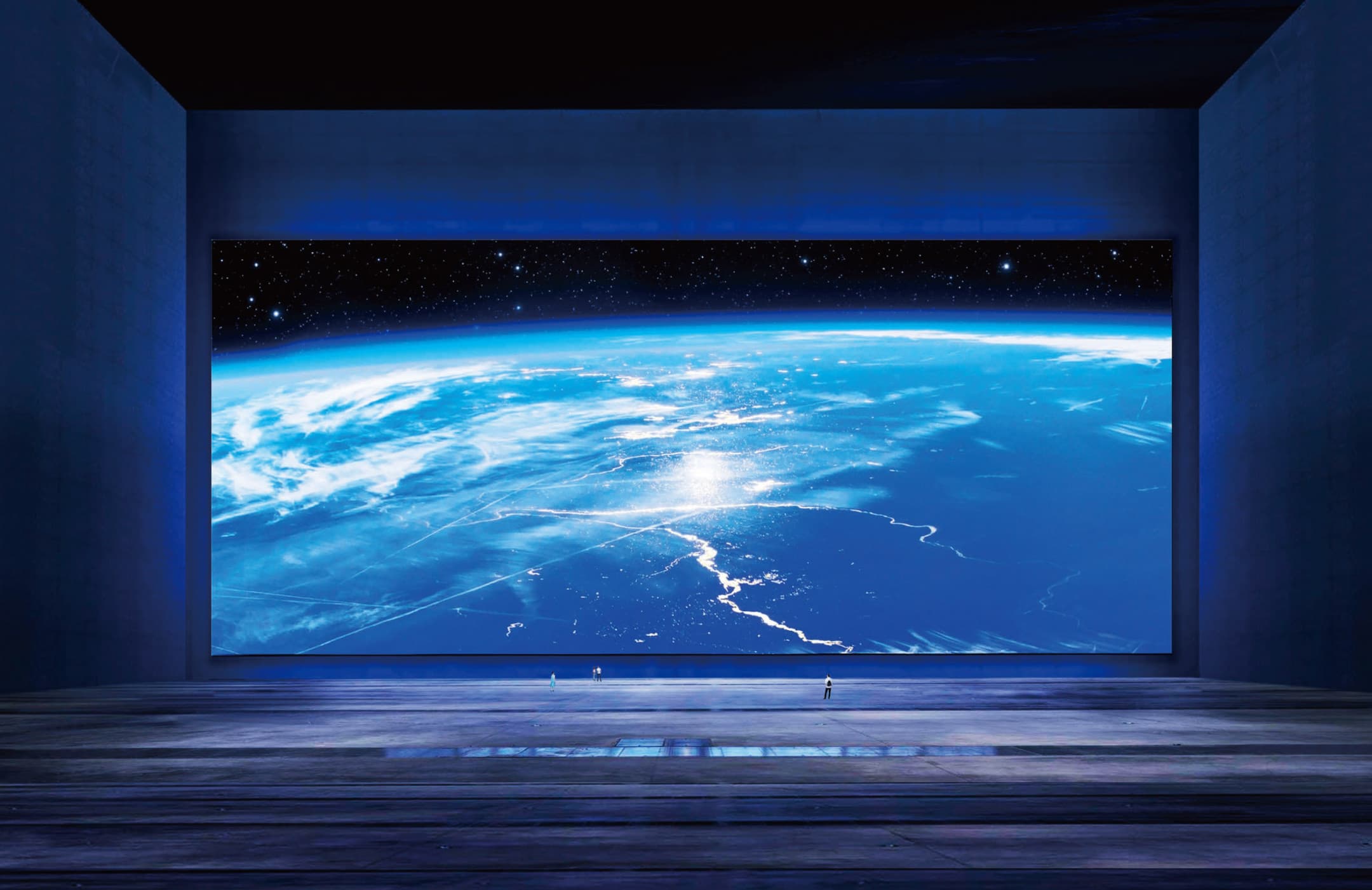 Recorded at 24K, machine learning AI super-resolution processing creates a video equivalent to 48K. The Earth is projected on a 100-meter-wide display, and if you look at the Earth from 3 meters away from the 100-meter-wide display, the visual experience is almost the same as looking at the Earth from the ISS, 400 kilometers above. If you then move backward, you should be able to see the entire Earth.